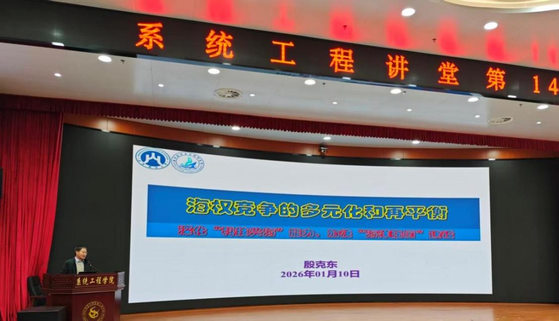殷克东教授应邀做客国防科技大学系统工程学院“系统工程讲堂”,并作题为《海权竞争的多元化与再平衡》的学术报告。报告围绕全球海洋治理、全球海洋战略、全球海洋经济等演化特征,系统阐述了全球海权竞争的新态势。殷克东教授指出,随着“特朗普2.0”美国战略的进一步调整推进,全球百年未有之大变局加速演进,美欧日印等国不断刷新战略认知与海洋布局,全球海洋战略步入系统性竞争新时代。海权竞争的主体不再依靠某一单点优势,而是将“通道、技术、能源、数据、金融、标准”等多元化要素整合为一套可复制、可迁移、可输出的体系化解决方案。海权竞争也从单一的“舰炮对轰”转向多要素-多领域协同的体系化-智能化博弈,必须统筹规则、网络、算力、算法、数据和空-天-海-地等一体化,才能赢得未来制海主导权。
