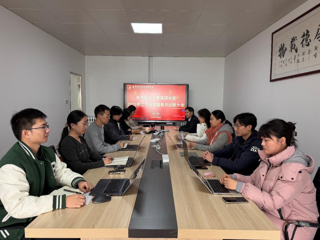 1月28日上午,海洋经济与管理研究院2025年工作总结暨教师述职大会在燕山校区逸夫楼502会议室召开。院长殷克东、副院长黄冲及全体教职工参加会议。黄冲副院长主持会议,并首先传达了学校于1月22日召开的2025年工作总结暨寒假重点工作部署会议精神,要求全体教师认真学习领会,压实责任,奋力前行。