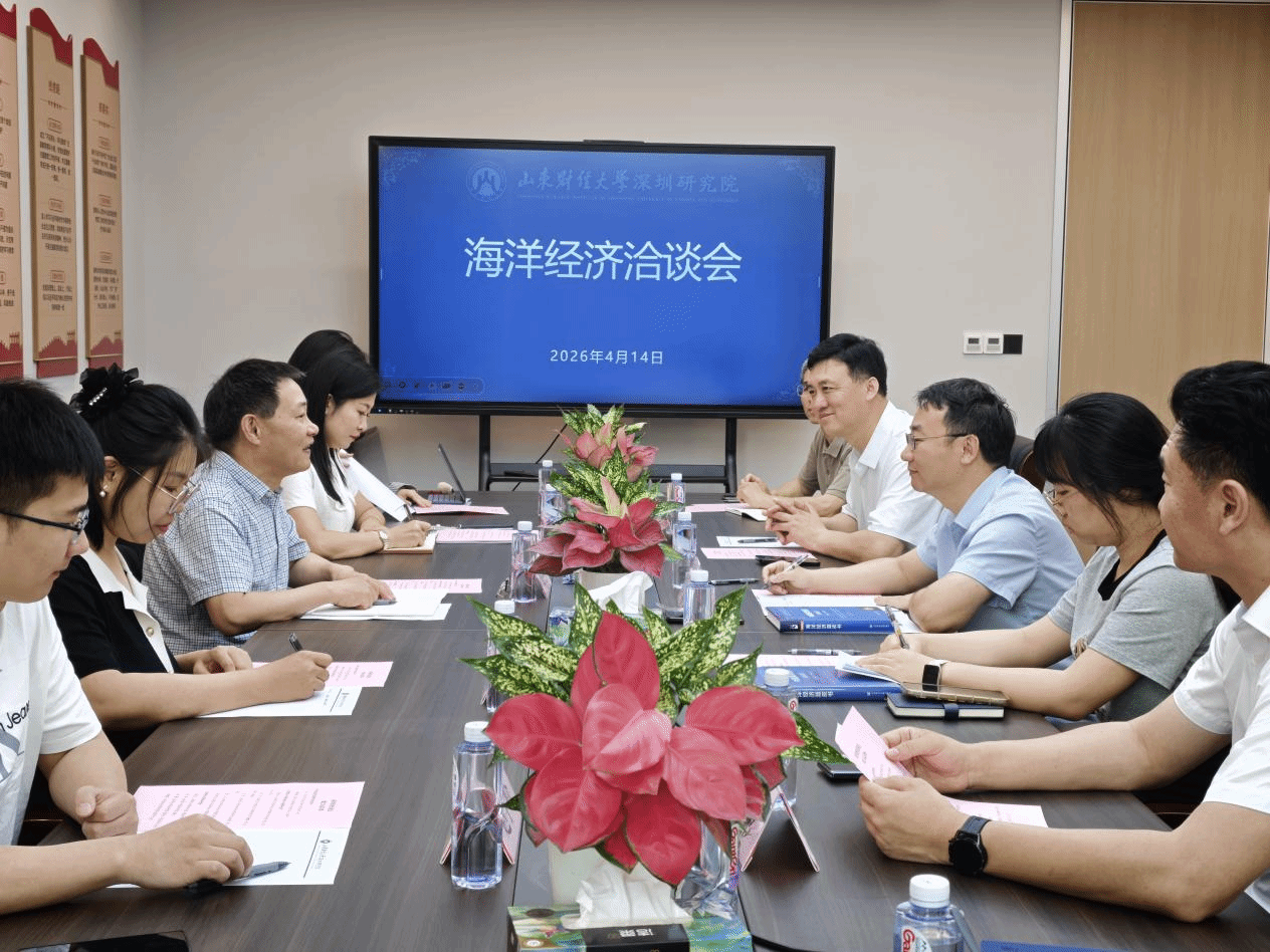 4月14日下午,山东财经大学海洋经济与管理研究院与深圳市龙华区发展改革局、山东财经大学深圳研究院在深圳举行海洋经济研究合作洽谈会。各方围绕海洋经济发展规划、特色产业培育及产学研协同创新等议题深入交流,并在深化合作方面形成共识。深圳市龙华区发展改革局民营经济科科长彭波、业务骨干蒋海燕,山东财经大学经济学院院长、海洋经济与管理研究院院长殷克东,海洋经济与管理研究院副院长黄冲,教师代表金雪、张丁凡、赵宇峰,山东财经大学深圳研究院常务副院长张宝义、副院长徐彬、副院长兼科技创新中心主任林腾、智库中心主任李瑞雪等参加会议。