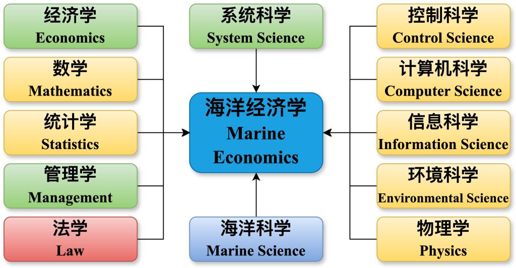 海洋经济学具有典型的多学科交叉特性。主要以经济科学为基础,涉及到海洋科学、大气科学、环境科学、系统科学、信息科学、控制科学,以及管理科学、数学、统计学、物理学、计算机科学、法学等众多学科。